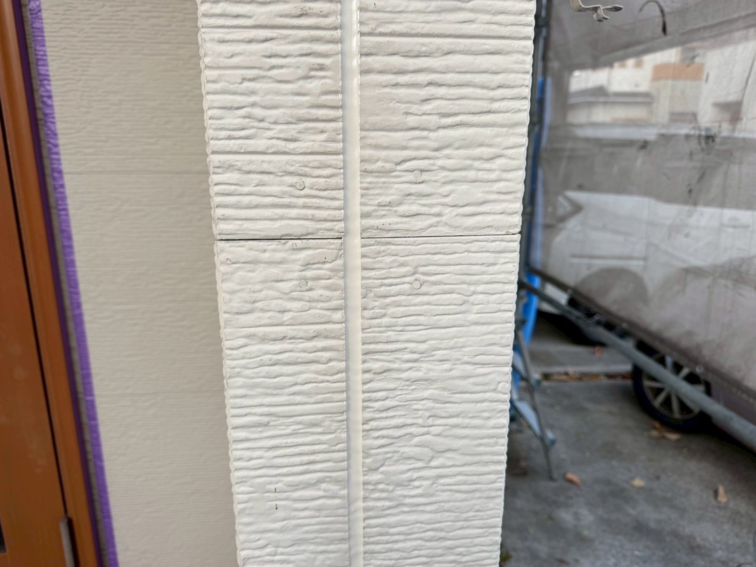 住宅の防水に使われるFRPは、ガラス繊維を混ぜたプラスチック樹脂で、白いシートのような外見をしています。