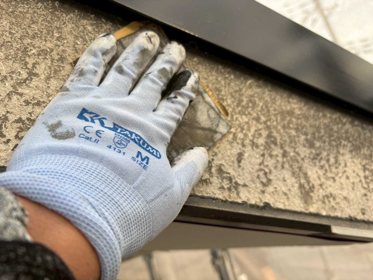 目粗しは、ケレンの程度が最も軽い状態の「ケレン4種」にあたる工程です。塗料の密着性を高めるのが主な目的で、鉄部の表面に細かな傷を付けることにより、塗料の接触面積を広げます。