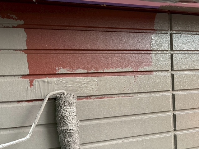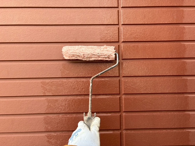 下塗り後に、中塗りをおこなう事により塗膜に厚みが出て、外壁の保護機能が高まります。