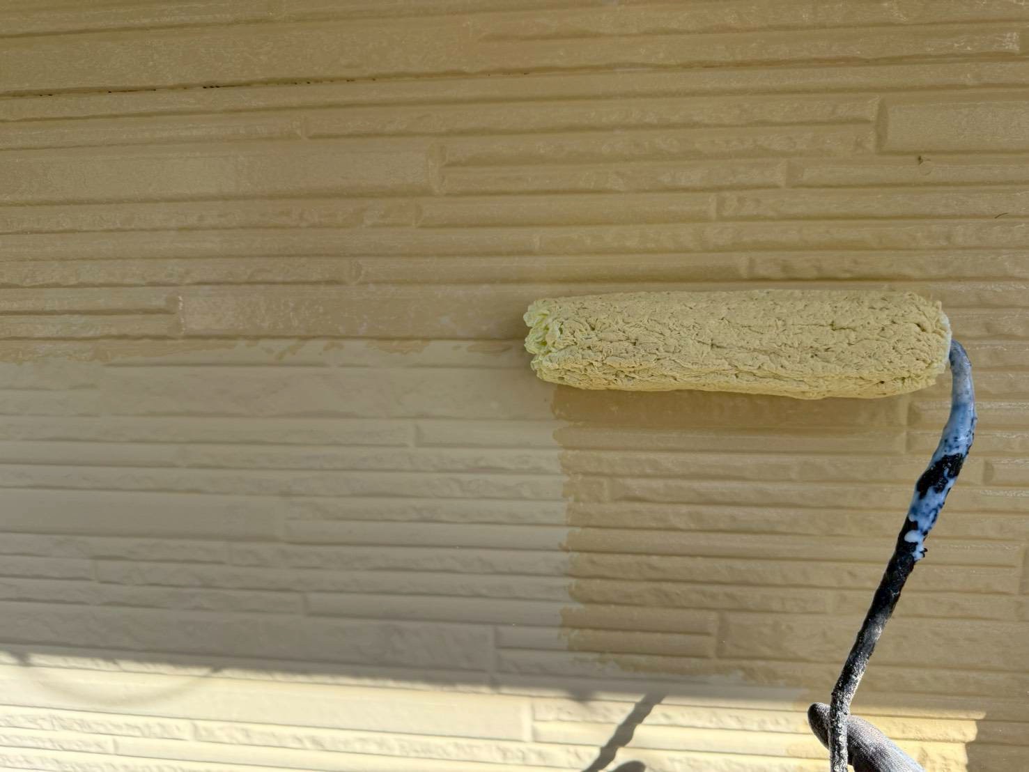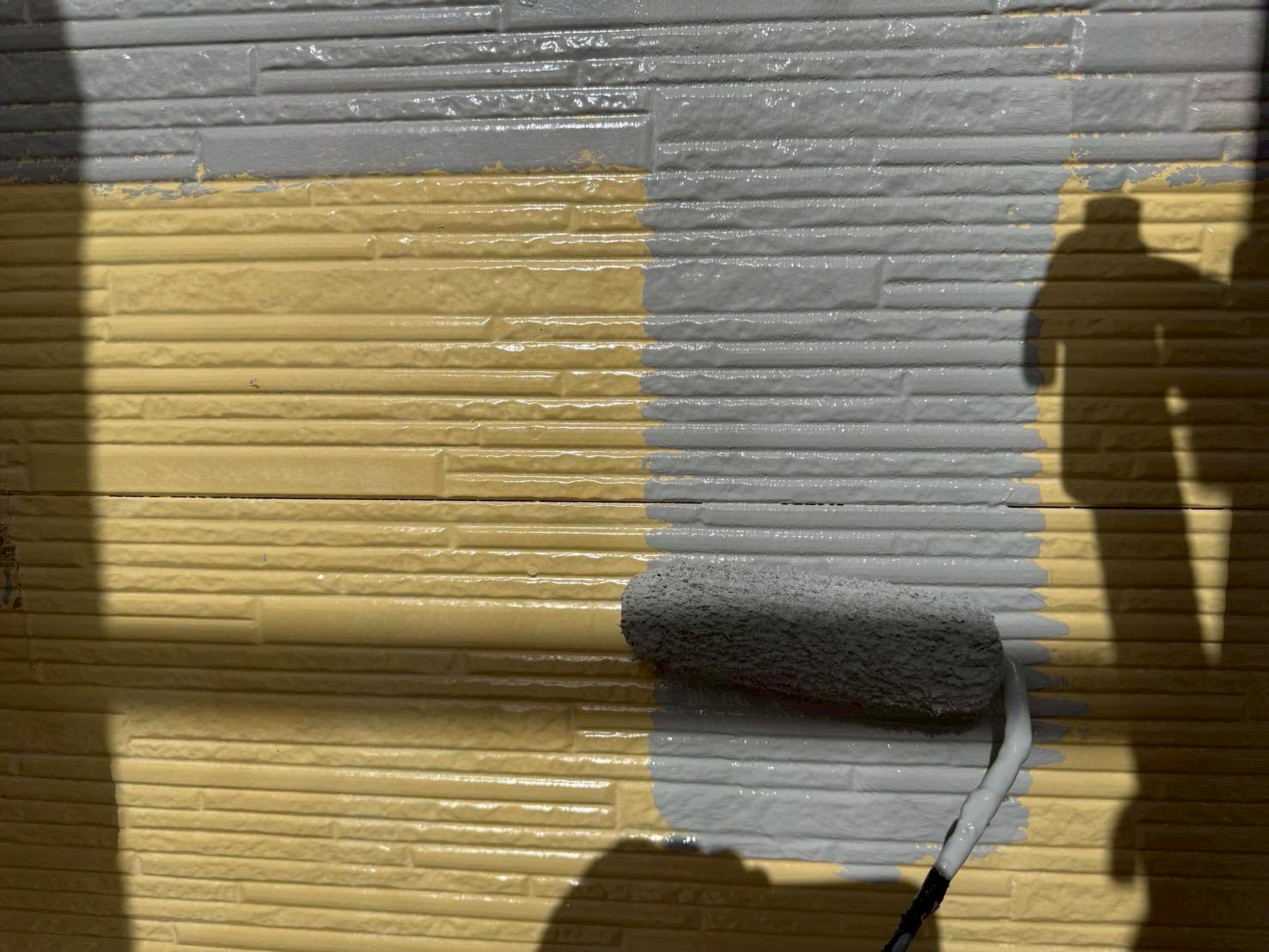 下塗り後に、中塗りをおこなう事により塗膜に厚みが出て、外壁の保護機能が高まります。