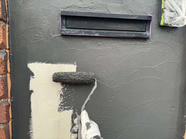屋根・外壁塗装をするタイミングで入口の塀を塗装することで、色調の新しさが統一されまるで新築に生まれ変わったような仕上がりになります。今回は外壁材と同じお色味の塗料で塗装させていただき、さらに美観性・耐久性を向上させることが出来ました