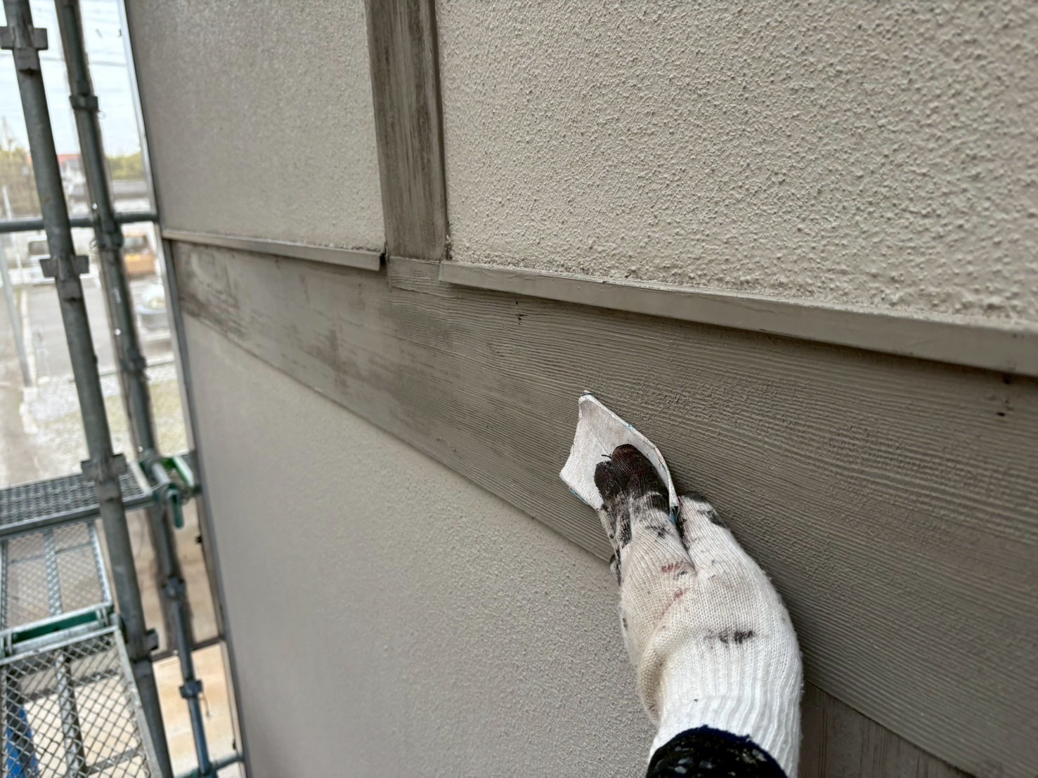 家の帯板のところだけ塗装が剥がれてきた!