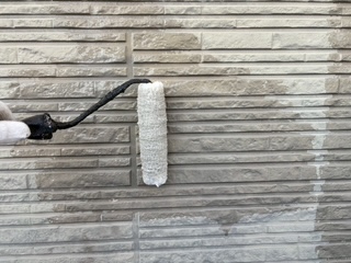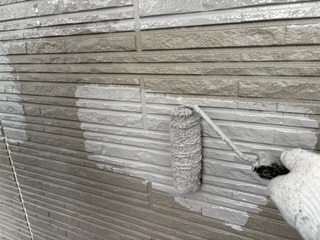 下塗り後に、中塗りをおこなう事により塗膜に厚みが出て、外壁の保護機能が高まります。