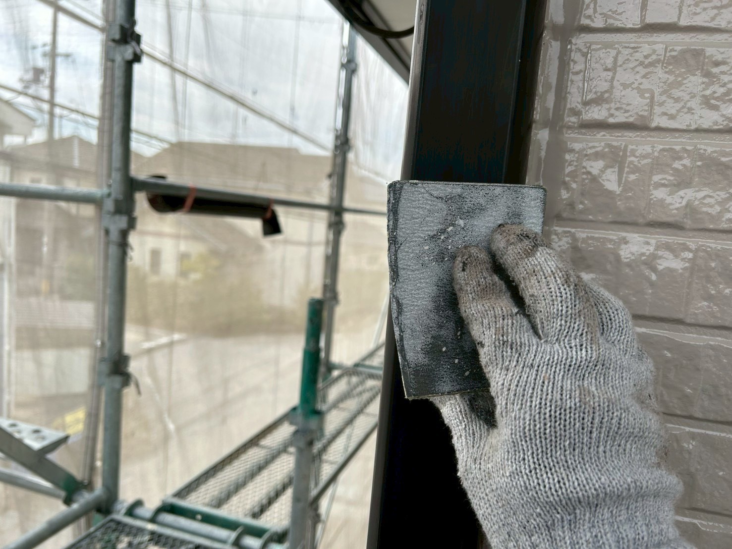チョーキングとは塗膜が経年劣化により粉状になり、耐候性や防水性の機能を果たせなくなる現象です。雨樋を手のひらで触ってみて、粉が付着するようであれば、チョーキングが発生しています。